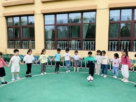 然后,老师又带着我们一起玩了上学期的足球游戏“关门大师”,看啊可能谁是能干的守门员。这个游戏我们在中班的时候经常玩,我们也都能够让足球一直留在我们的群里,不跑出去。这个游戏我们玩了好几场,老师夸我们这学期踢球比上学期更厉害了!